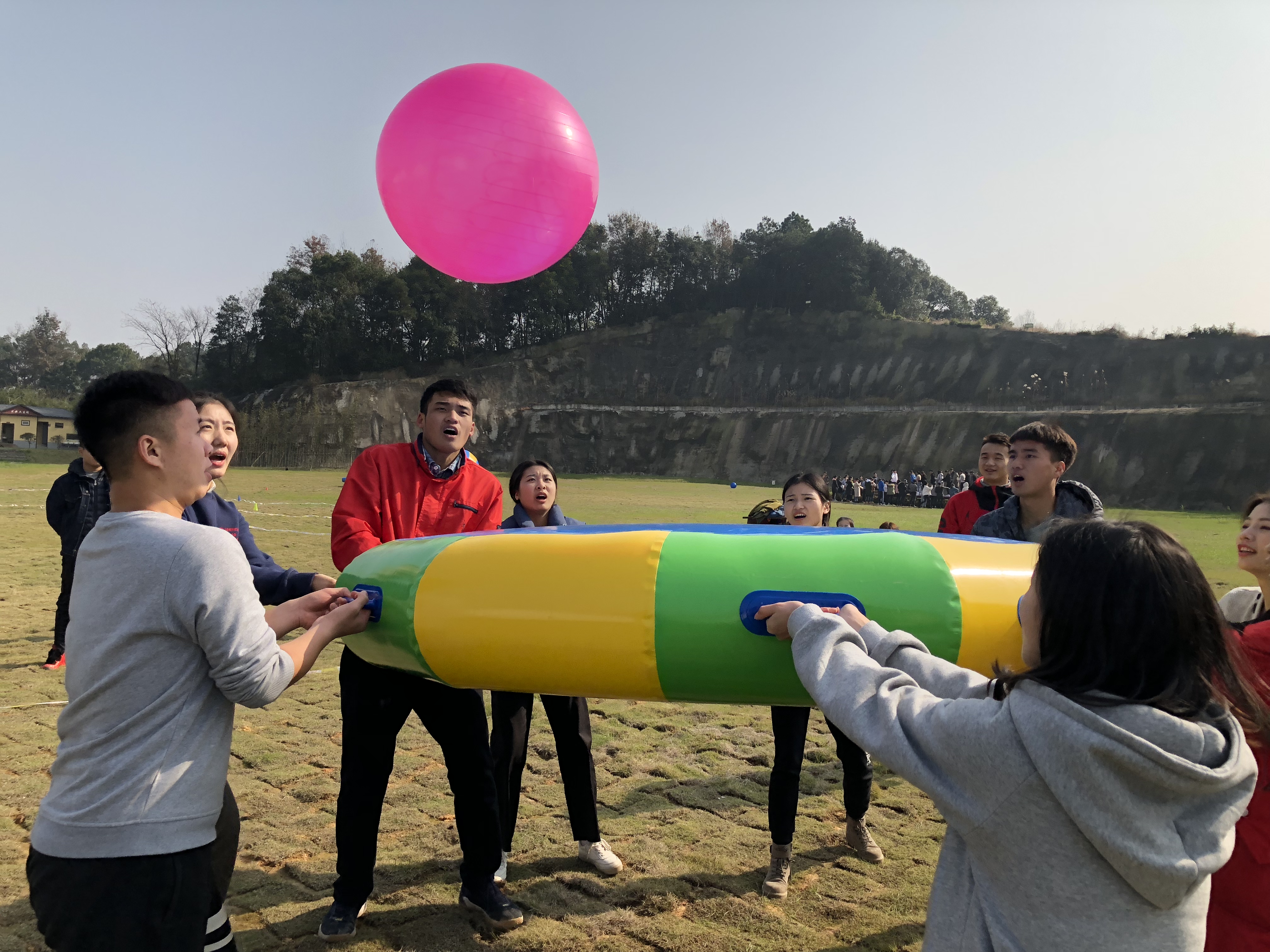 活动内容分为众星捧月、趣味袋鼠跳翻牌大作战、鸿运当头、车轮滚滚、碰碰球大作战、趾压板跳绳六部分。在场上,各方队员敢拼敢抢、势均力敌,气氛极其热烈。此次团建活动促进了第六党小组成员的相互交流以及团队之间的凝聚力。