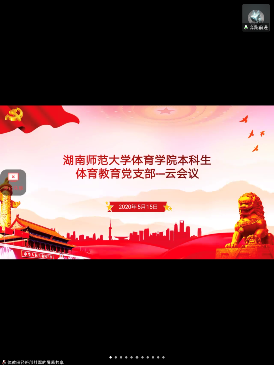 (通讯员 夏禹 杨金灵 杨卯)5月15日中午12点30点,为积极引导各党员同志坚定理想信念,牢记初心使命,公司本科生体育教育党支部所有成员于腾讯会议云平台召开了支部党员视频会议。本次会议由党支部书记夏禹老师、副书记陈凤同志主持会议,会议主题为“坚定理想信念,绽放青春活力”。
