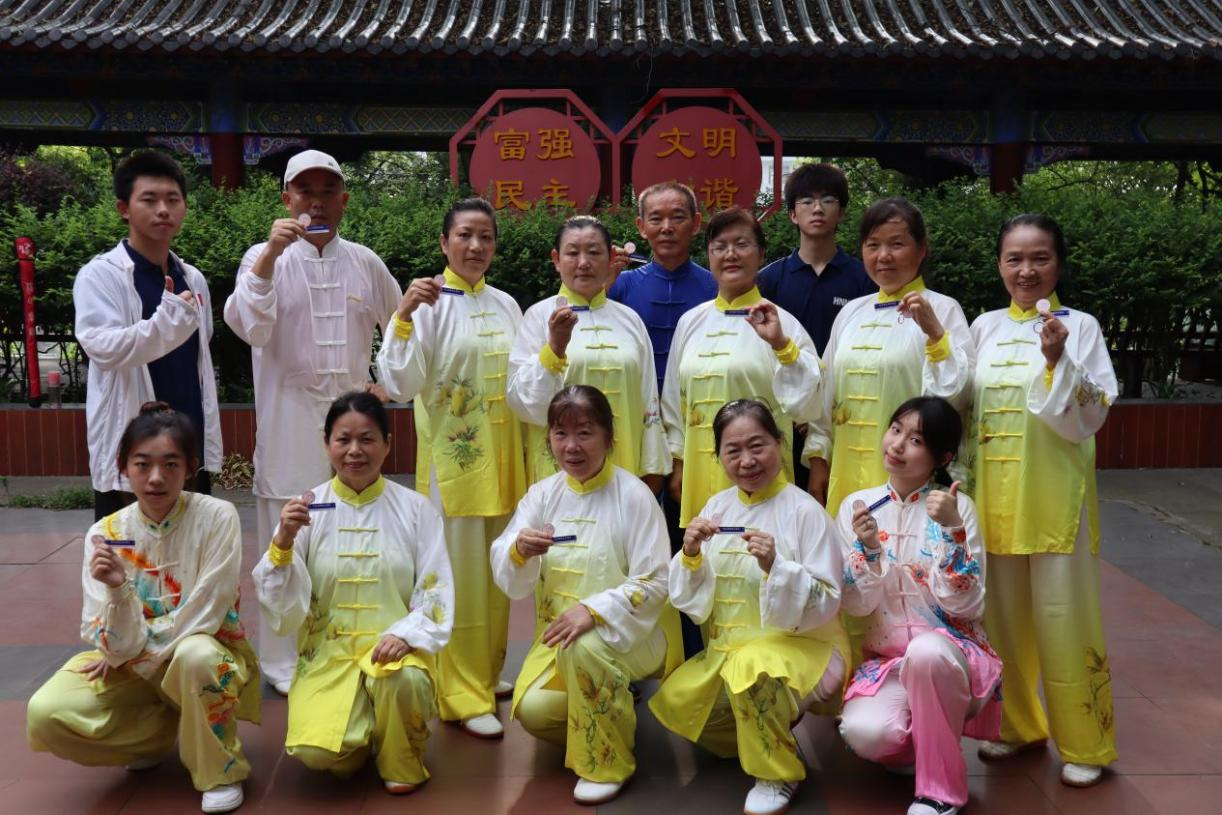 在活动中,实践团成员们不仅展示了精湛的太极拳技艺,还与当地爱好者共同练习了二十四式太极拳、八法五步、马王堆导引术、游龙拳、武当剑及八段锦等武术套路。每一次的太极拳演练,都如同一幅流动的水墨画,将传统与现代、刚劲与柔和完美融合,成为一道道引人注目的风景线。