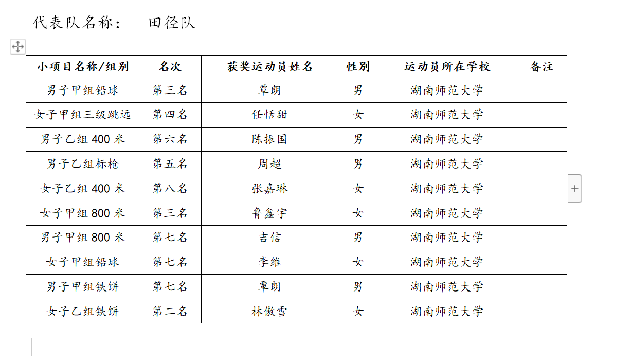 公司代表队在校领导和院领导的大力支持下,征战学运会赛场,同时也代表湖南省大学组参赛。战鼓擂响,旗帜飘扬,运动健儿们始终坚持着“厚载博学、行健自强”的体院精神,奋力拼搏,不畏强手,奋勇争先,不仅表现了高超的竞技水平和老员工的精神风貌,更展现出湖师大学子的傲人风采,续写了公司体育新的篇章!在此由衷的感谢领导的大力支持,佳绩的背后离不开领导和老师的关怀与帮助。以梦为马,不负韶华,体院学子将继续秉持师大精神砥砺前行,再创辉煌!