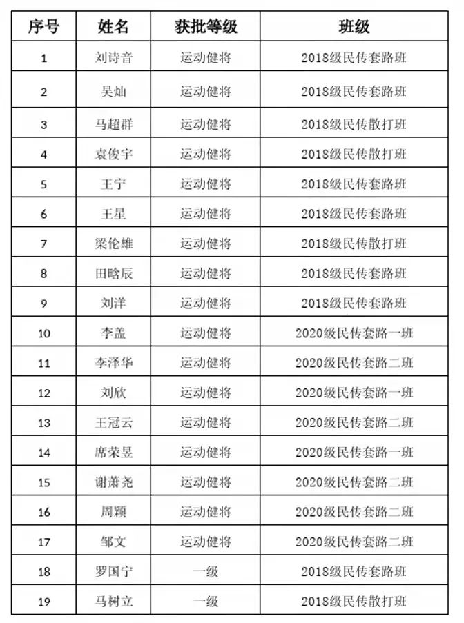 2021年11月9日收到中国龙狮运动协会下发关于《中国龙狮运动协会运动员技术等级管理办法(试行)》的通知,公司按照文件要求积极整理相关资料,加快推进舞龙舞狮运动员技术等级申报工作,在2018年—2021年相关赛事中,mksport体育龙狮团队共有32名同学荣获首批“龙狮运动员等级”称号,其中梁贤、马超群等30位同学获批“运动健将”称号,马树立等2位同学获批“一级运动员”称号。