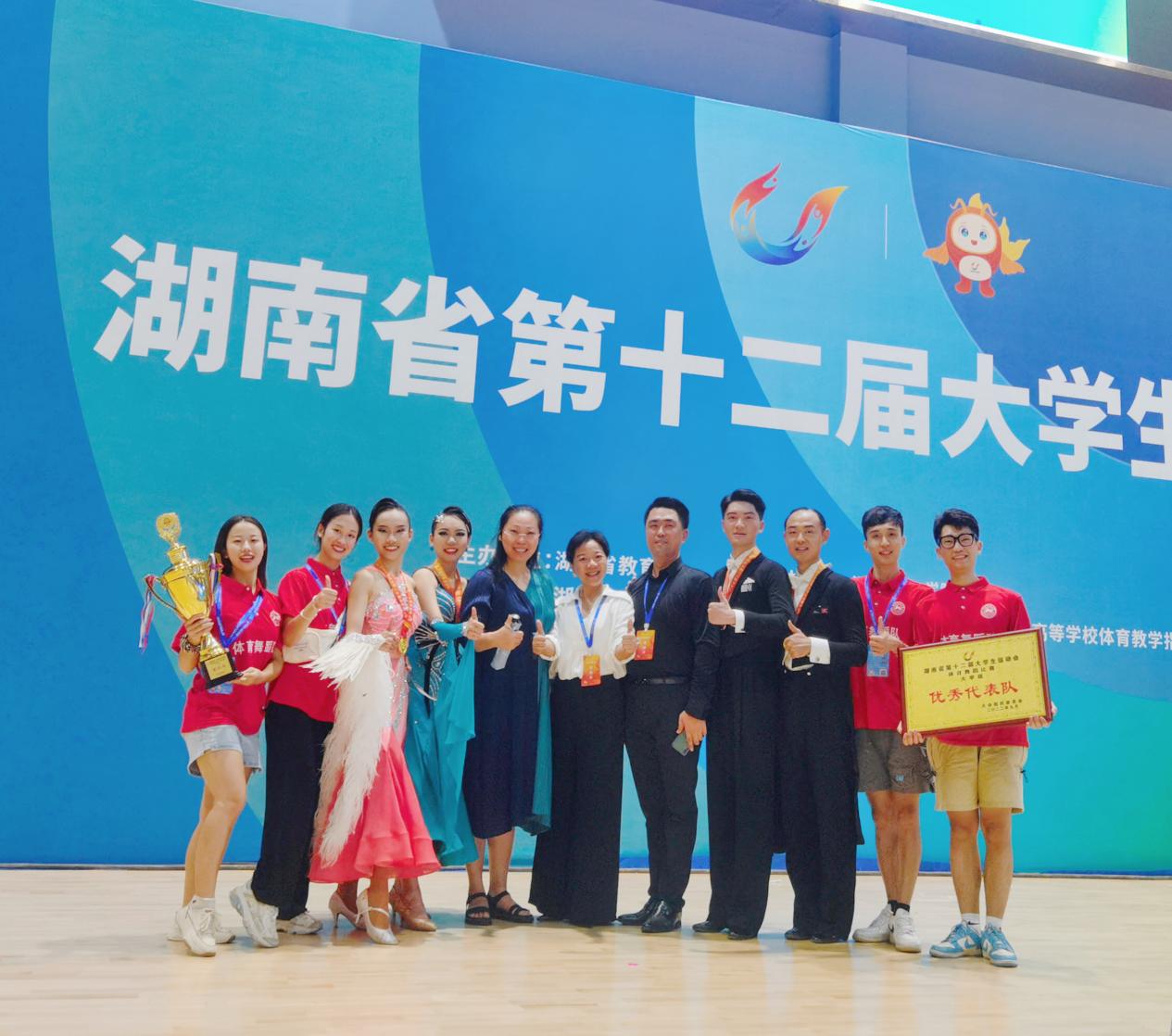 此次比赛有来自湖南省几十所公司的近百支代表队参赛,公司体育舞蹈代表队在院领导、全体教师及教研室全方位的支持下参加比赛。本次比赛中每个项目每校仅限报两对运动员,公司8名运动员参与了国标舞双人摩登舞五项和交谊舞双人拉丁舞四项两个大项目的舞蹈角逐,最终荣获两枚金牌,两枚铜牌,同时公司代表队荣获“优秀代表队”称号!