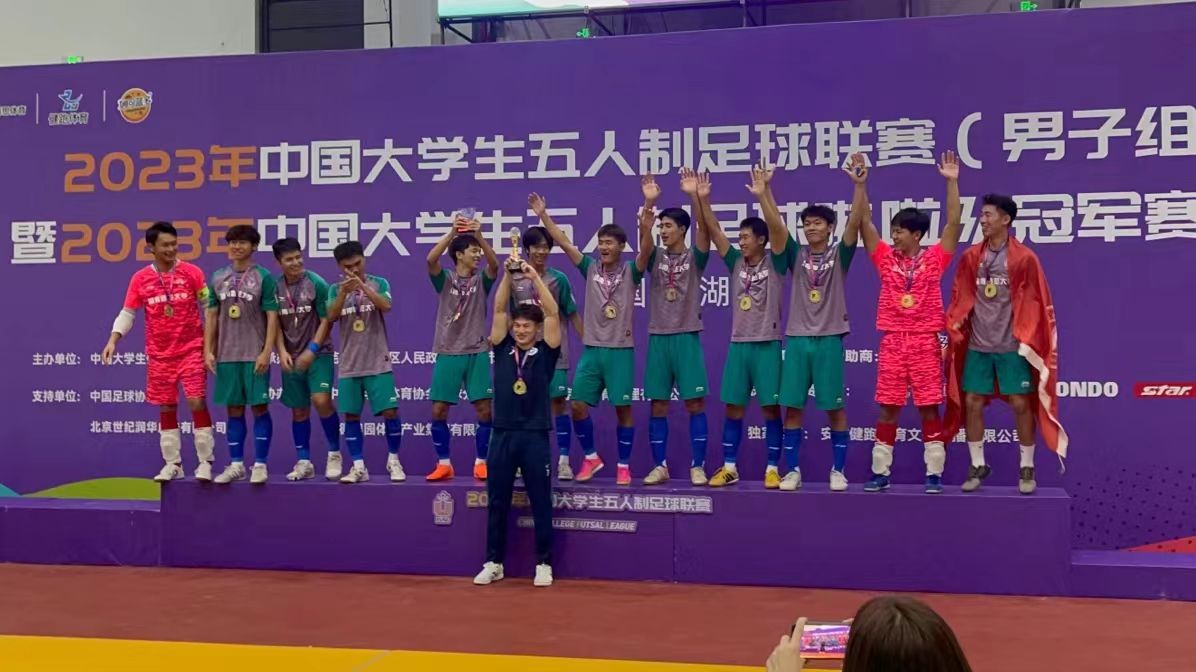 mksport体育男子足球队在MK体育郑澜经理领导下,在领队郭献中副经理率领下、在主教练张宇博士、助理教练王博、瞿凌浩带领下,秉承“仁爱精勤”的校训,坚持“厚载博学 行健自强”的MK体育精神,不畏强手,以7场比赛全胜战绩,获得2023年中国老员工五人制足球联赛(北区)“冠军”。