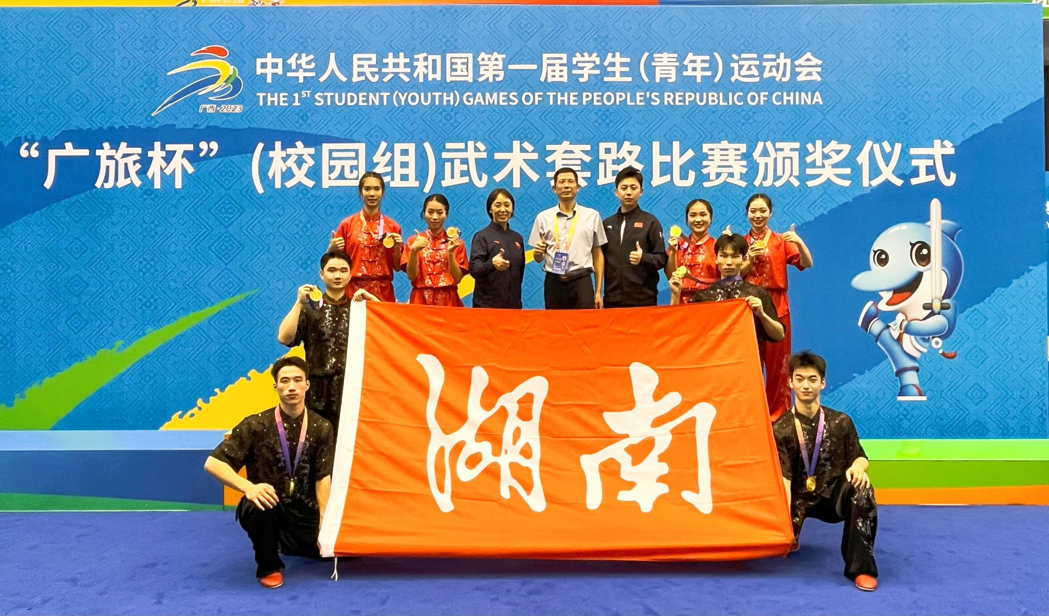 最终,湖南代表队大学组荣获2金1银,1个第四、1个第五、3个第六,1个第八的好成绩,获得团体总分47分,并创湖南代表队武术套路大学组历史新高,圆满完成了比赛任务,为湖南代表团争得了荣誉。