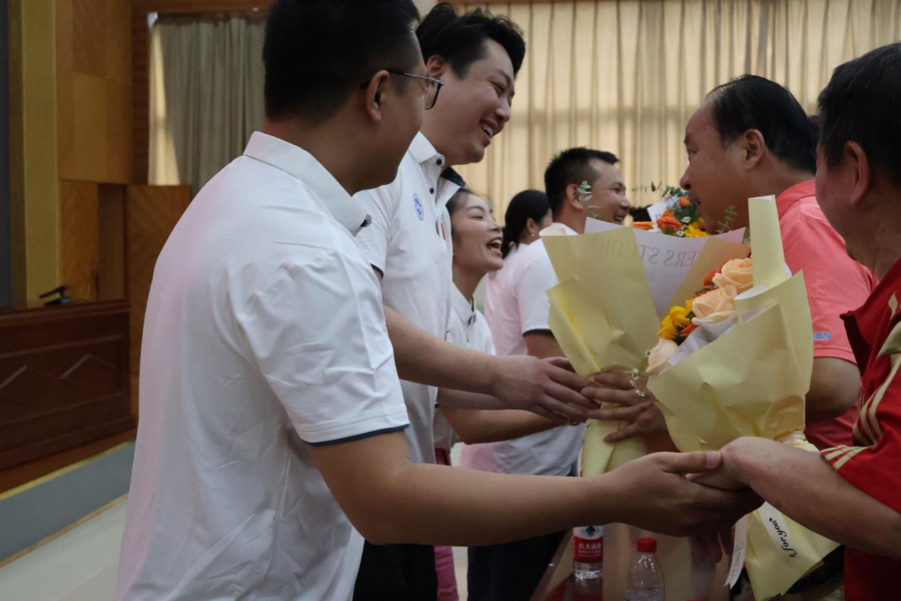 典礼最后一项,员工代表向恩师献花致敬并捐赠孔子像摆件