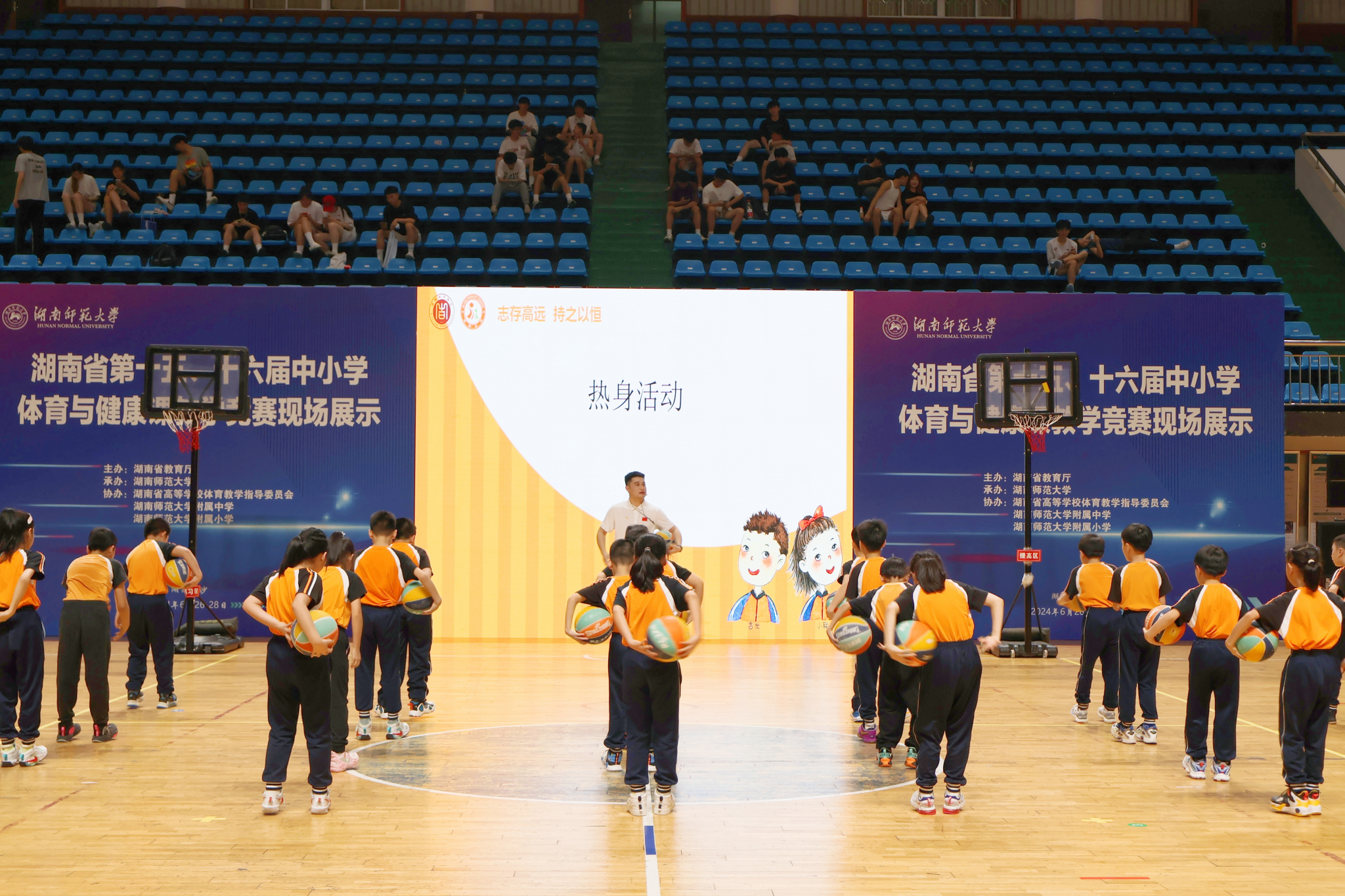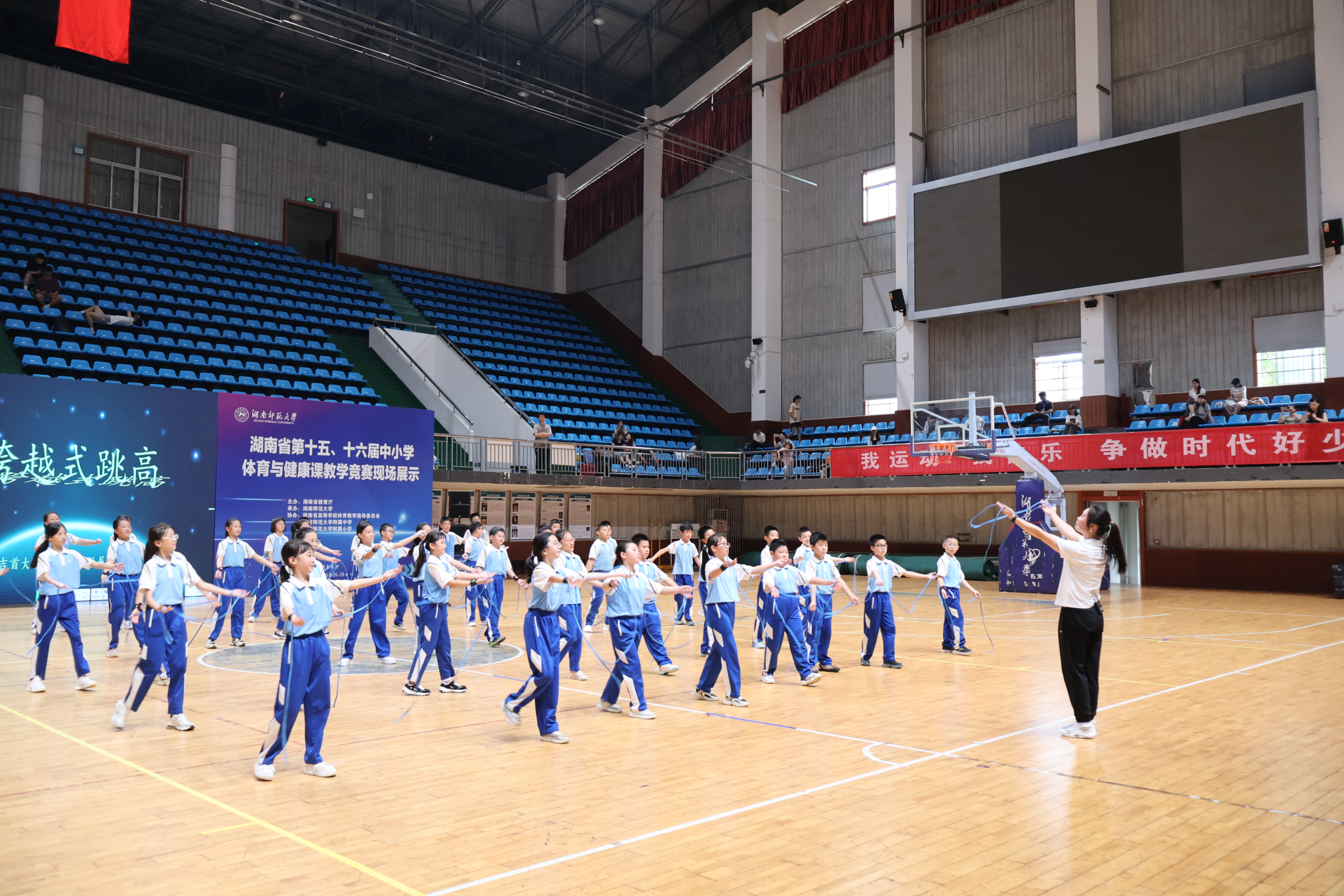 (通讯员:史英华)6月27日下午两点,湖南省第十五、十六届体育与健康课教学竞赛活动现场展示在公司行健馆开展,此次展示由湖南省教育厅主办,mksport体育承办,湖南省高等公司体育教学指导委员会、mksport体育附属中学、附属小学协办。湖南省教育厅体育卫生与艺术教育处处长贺照,国家中小学体育与健康课程标准研制组组长季浏教授,国务院学位委员会体育学科评议组成员汪晓赞教授,湖南省高等公司体育教学指导委员会副主任委员刘亚云教授、汤长发教授,委员万义教授、田祖国教授、刘玉江教授、李艳翎教授、陈捷教授、周次保教授、周志宏教授、曹庆荣教授、敬龙军教授、蔡艺教授、刘雪勇教授、孙雄华教授,副秘书长刘文锋教授等专家领导,及芷江侗族自治县第一中学、娄底市第四中学、长沙市长郡中学、mksport体育附属中学等15支中小学代表队,湖南省十四个地州市300余名观摩教师,MK体育副经理郭献中、党委副书记李皓、副经理余琳等出席本次活动。