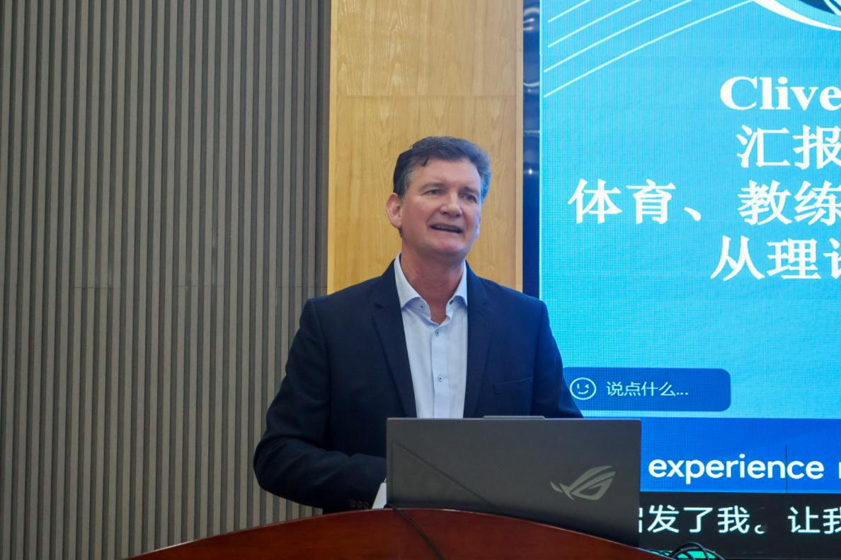 英国中央兰开夏大学的资深讲师,博士生导师Clive Palmer作了题为“体育、教练和运动教学法从理论到实践”的报告。阐述自身从实践到理论的经历,分享在体育教练、教学法等方面的工作,介绍通过定性研究推动教学创新,创办期刊并参与博士教育改革,还参与英国研究生教育委员会工作提升博士指导水平等工作。