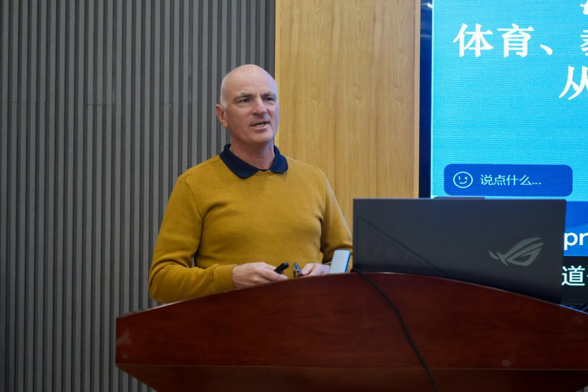 英国中央兰开夏大学体育与健康科学公司研究与创新主任David Grecic教授作了题为“体育与运动科研项目”的报告。他主要围绕体育教育、运动科学等领域展开,介绍了各自公司、研究团队及相关项目,研究方向涵盖体育活动对身心健康的影响、教学方法创新、数字技术应用等;还探讨了国际合作,包括员工和教师交流、联合研究等,旨在提升全球体育教育质量。
