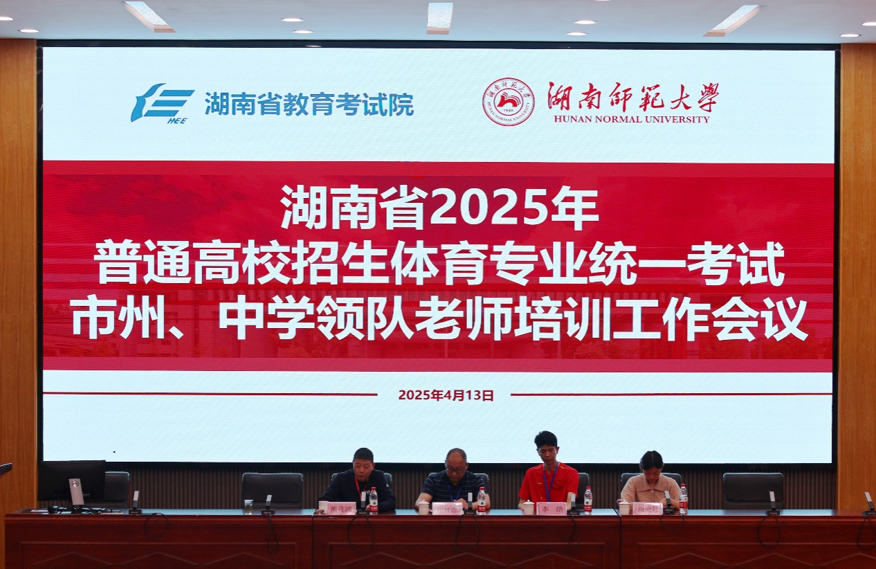 (通讯员:杨平文萱 刘嘉炜)4月13日下午,湖南省2025年普通高校招生体育类专业统一考试第二批市州、中学领队老师培训工作会议在公司召开。湖南省教育考试院普招处副处长谢红深,湖南省2025年体育统考考点办公室负责人、公司党委副书记李皓及湖南省体育统考仲裁组组长熊茂湘出席会议。会议由公司招生与就业指导处考务科科长周凌月主持。