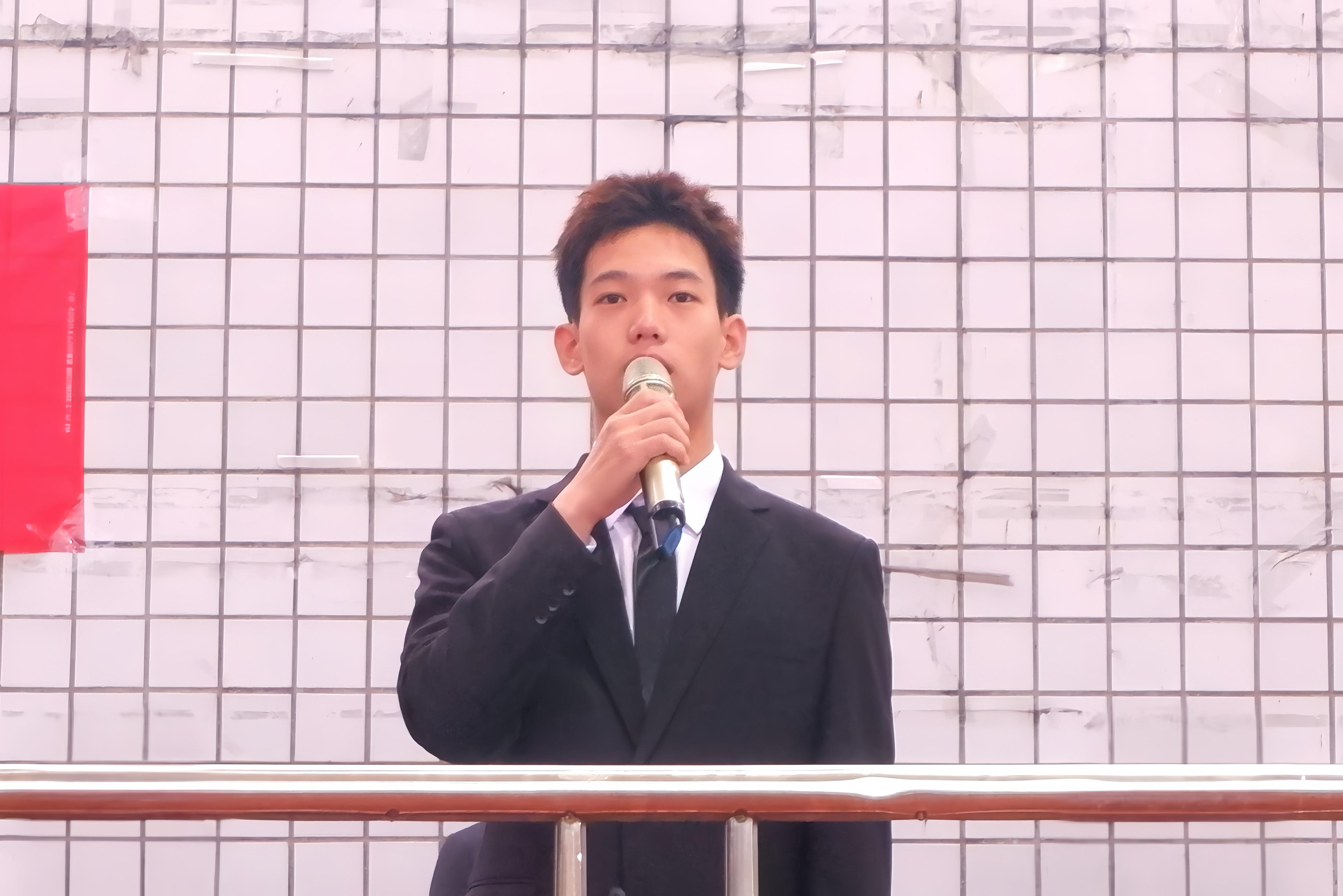 来自2023级武术与民族传统体育专业的王志豪同学,以《以挫折为阶,攀人生高峰》为主题进行宣讲。他举出贝多芬,司马迁等人物实例告诉我们挫折并不可怕,最后引用罗翔老师的话激励同学们要战胜挫折,实现自我突破。