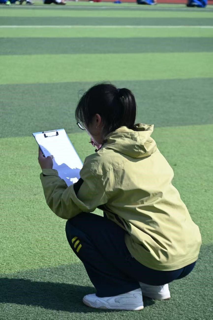 在比赛过程中,实习教师们分工明确、各司其职,展现出高度的专业性。除裁判组教师负责田赛、径赛的现场执裁外,检录组教师严格核对运动员信息,确保比赛有序进行;统分组教师精准统计比赛成绩,保障赛事数据的准确无误。各岗位教师密切配合,以严谨的态度和专业的素养,确保了各项比赛的公平、公正、高效进行。