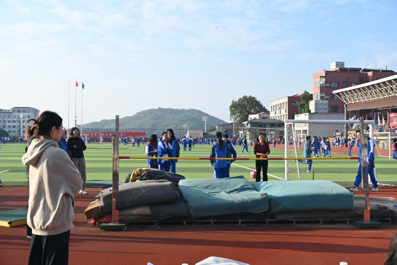 运动会的成功举办离不开前期的周密准备。在赛事开始前一周,"云旌九队"实习教师团队便投入紧张的筹备工作。从场地器材的清点布置、跑道标线的精准丈量,到开幕式表演节目的精心排练,实习教师们协同合作,确保每个环节规范有序,为运动会的顺利开展奠定了坚实基础。